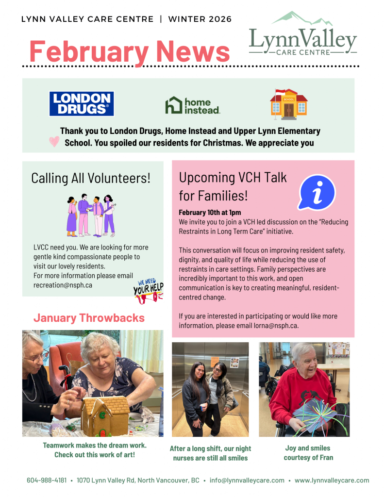 View Larger Image February Newsletter 2026 Table of Contents Maya2026-02-06T21:19:16+00:00February 5th, 2026|Activities|0 Comments Share This Story! FacebookTwitterRedditWhatsAppEmail Related Posts Senior-Friendly Accessible Trails in North Vancouver Gallery Senior-Friendly Accessible Trails in North Vancouver LVCC April 2026 Newsletter Gallery LVCC April 2026 Newsletter 2026 Spring Activities for Seniors in North Vancouver Gallery 2026 Spring Activities for Seniors in North Vancouver March Newsletter 2026 Gallery March Newsletter 2026 Senior Volunteer Opportunities in Vancouver 2026 Gallery Senior Volunteer Opportunities in Vancouver 2026 Leave A Comment Cancel replyComment Save my name, email, and website in this browser for the next time I comment. Δ